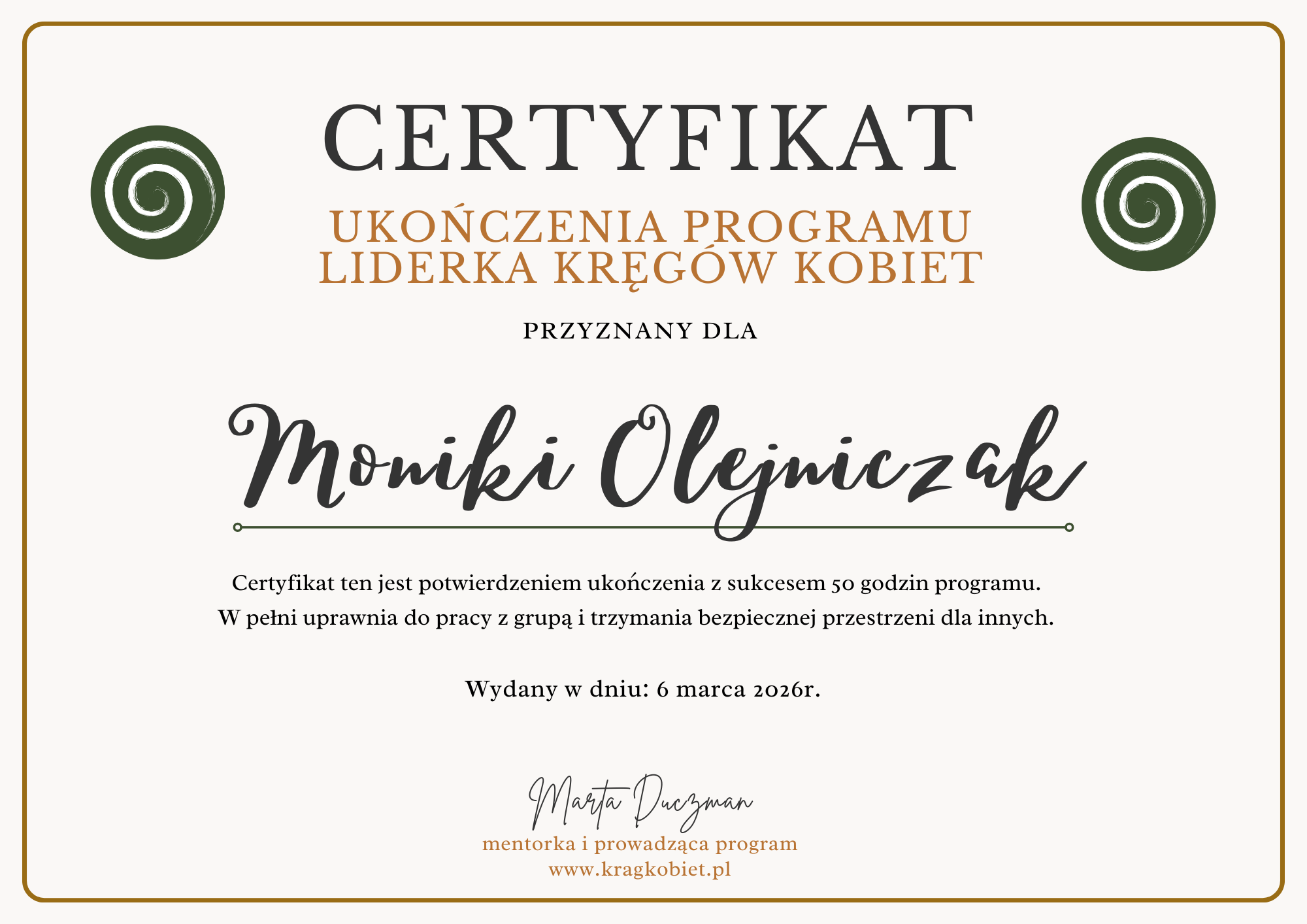 w swojej prawdzie, w swojej drodze, po swojemu. Tu będziesz zaakceptowana, zrozumiana i nikt nie będzie Cię oceniał.